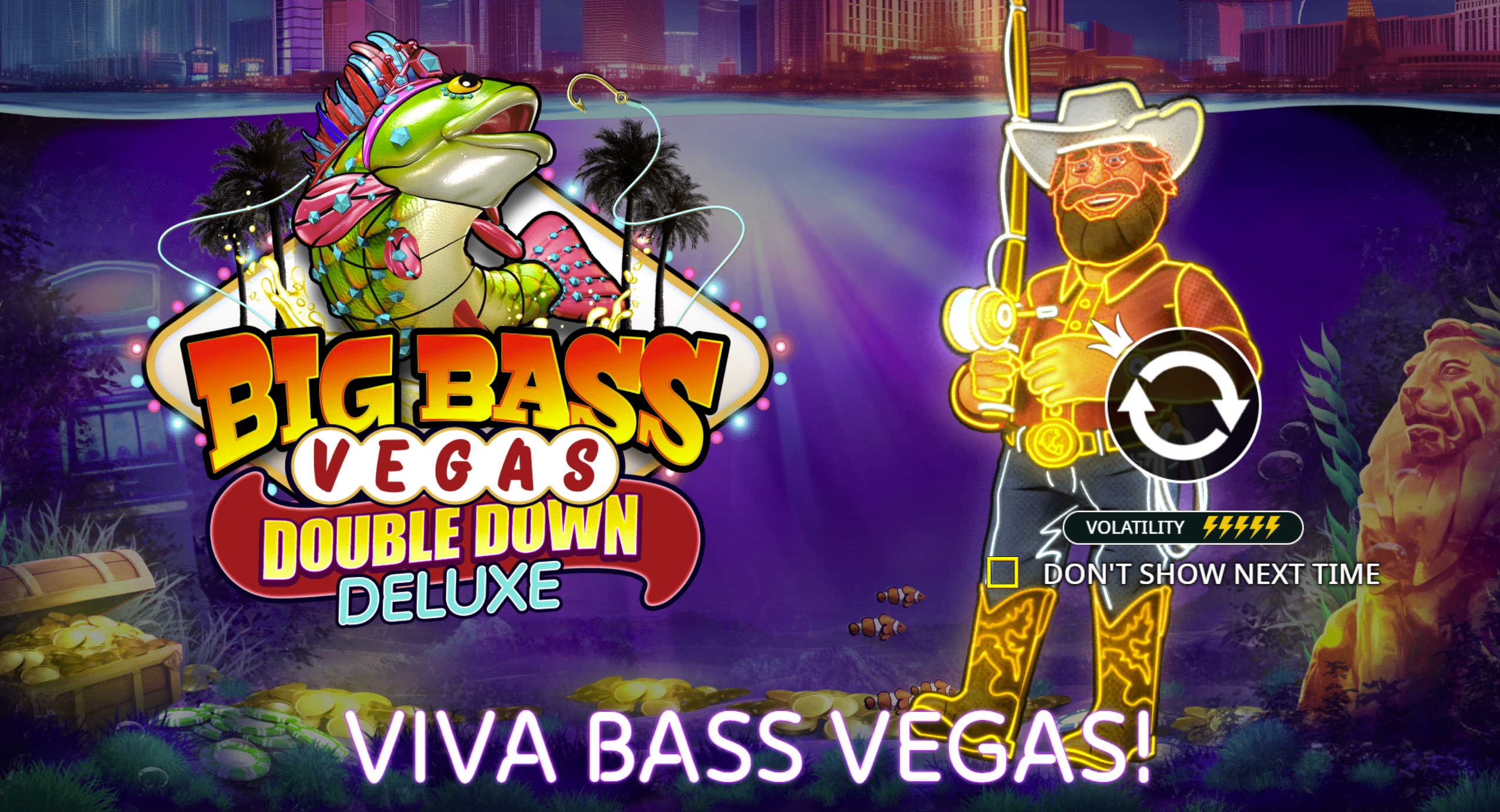 Big Bass Vegas Double Down Deluxe is a fishing-themed online slot from Pragmatic Play. This version brings a neon-LasVegas twist to the popular Big Bass series, combining classic slot mechanics with flashy visuals, dual wild mechanics and a free-spins bonus system designed for big payout potential. The game is built on a 5-reel grid and emphasizes high volatility with features that can reward large wins.